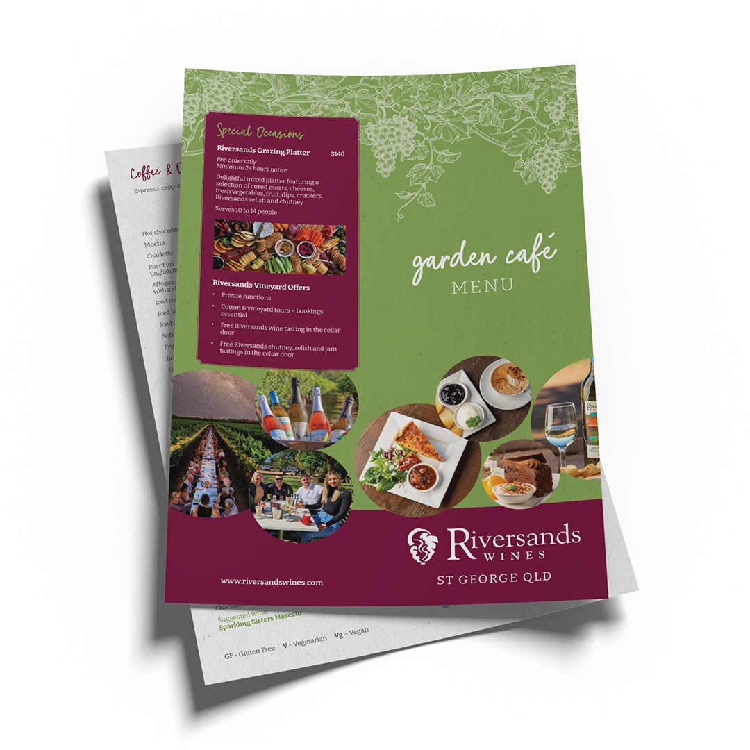 After your wine tasting order smoko or lunch and relax in our outdoor garden café with a glass of your Riversands favourite!